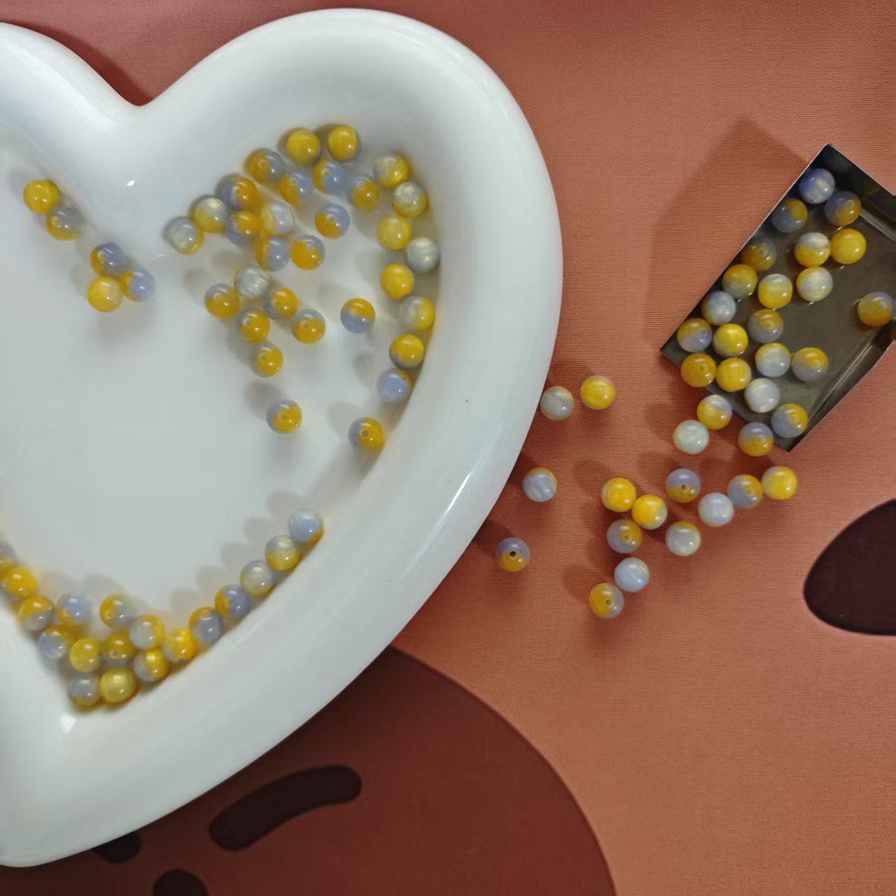 AJ004【Ready stock】Resin Beads - 8mm, Yellow Gray, Pack of 100